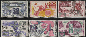 znaczki czyste bez podlepki ani jej śladu: programy podboju kosmosu; rakiety, sputniki, lądowniki