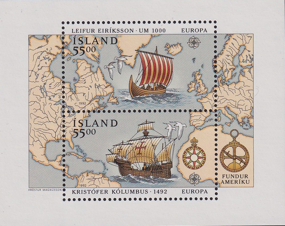blok czysty bez podlepki ani jej śladu / mint never hinged / tematyka : statki , Europa Cept , Kolumb |