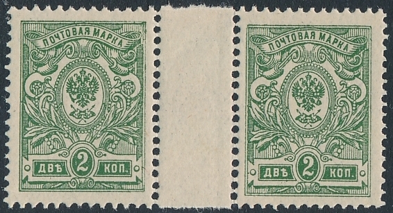 znaczki czyste w parce poziomej rozdzielonej międzypolem z oryginalną gumą bez podlepki ani jej śladu wydanie perforowane , typ II w barwie szarozielonej nakład z 1915 roku z okresu wojennego , bardzo dobry stan zachowania znaczków |